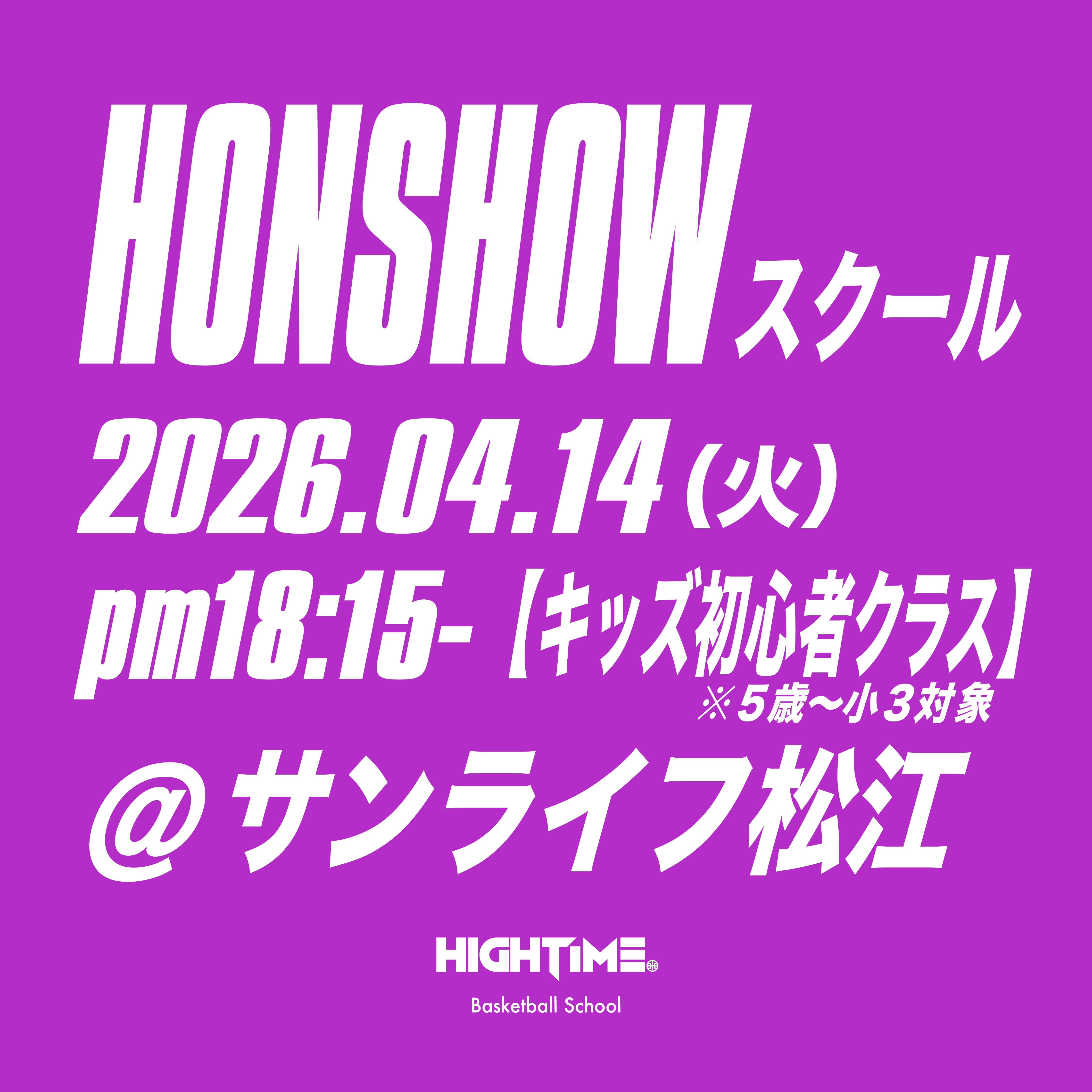 4月14日 (火) HONSHOWスクール 【キッズ初心者クラス】